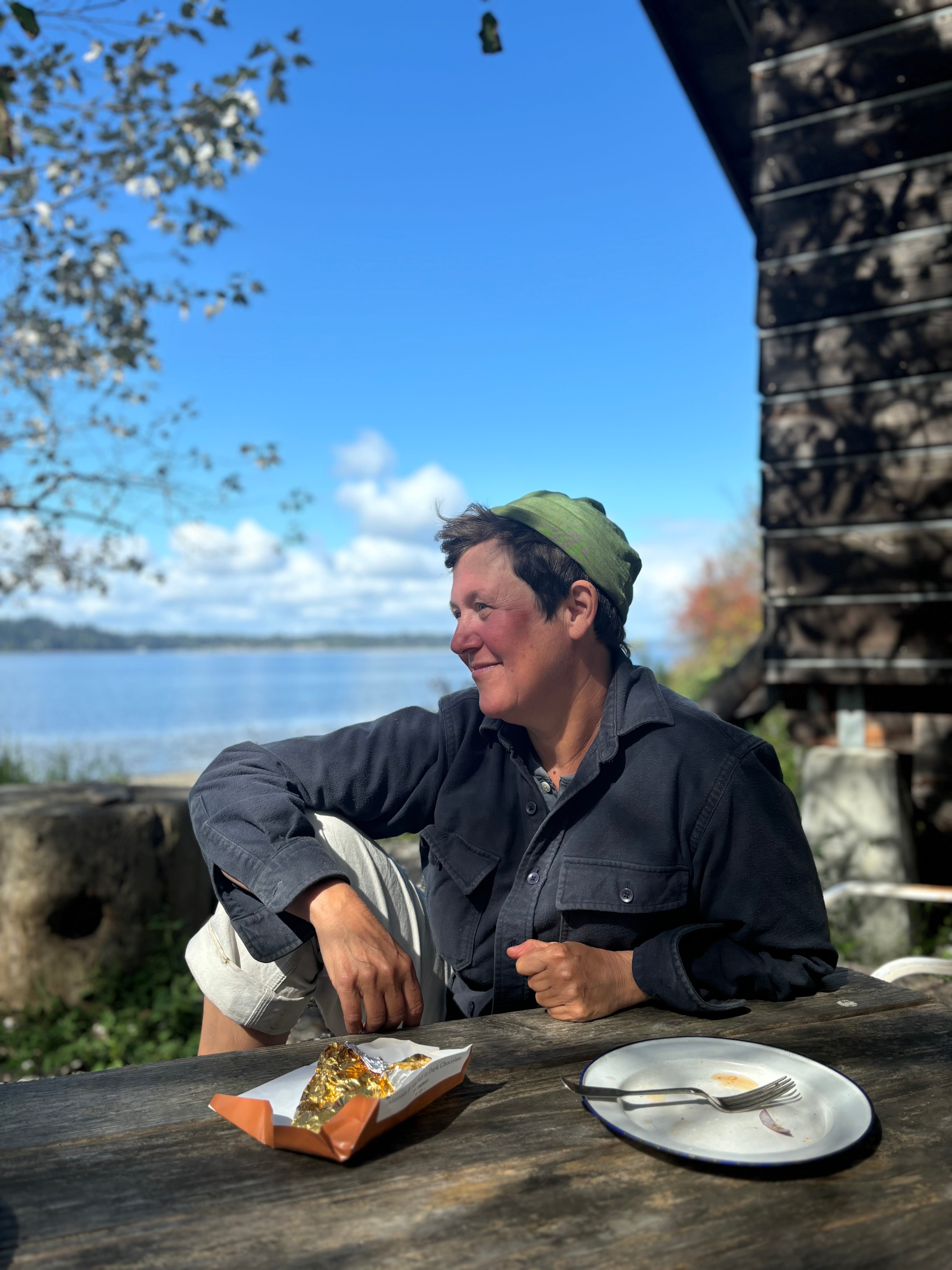 The light already is at a sharper angle. Each day there is a layer of wool added, each time for another hour. Wool socks for the morning and back on again in the evening. A thin sweater hidden under layers so as not to alarm those still parading about the town with ease in shorts. I eat breakfast with squirrels. They nibble the seeds of vine maples while I eat chanterelles found in black woods. One squirrel runs up a tree, up a hundred feet with a mouthful of leaves, shoves it in a hole, and just as quick races down. Another mouth of leaves is brought up before I can take a sip of tea. I am slow this morning. The sky is gray. There is work to do. I sip some more and read Heather Cox Richardson’s Substack post. She reveals the patterns of politics, the then, and now, and when of human governance. I take it all in. I gather the fruit, the apples and pears to sweeten the days ahead. All the work for the future is done in the Fall.